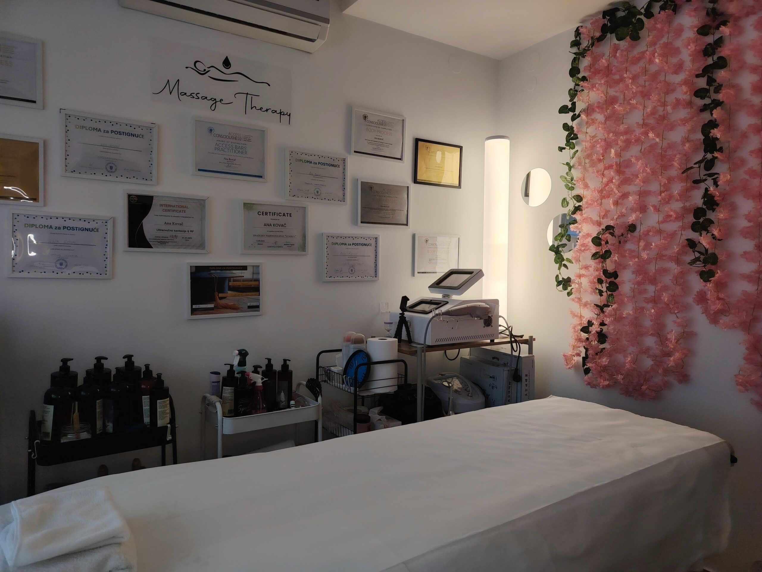 Glavne usluge uključuju klasične, sportske, anticelulitne masaže te access bars tretmane za smanjenje stresa.